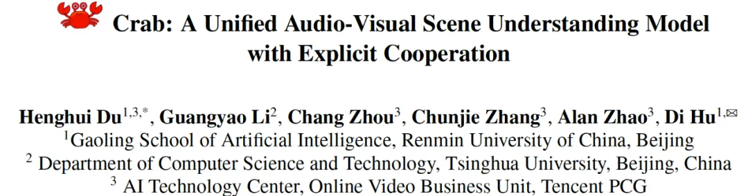 论文标题:Crab: A Unified Audio-Visual Scene Understanding Model with Explicit Cooperation