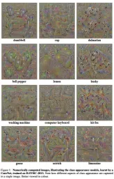 为目标函数,不断迭代I,直至收敛到最大值点。在这里加入L2正则项的原因是为了防止图像I的像素值一味增大忽略任务的要求。在训练完成之后,会得到每个类别的显著图,如下: