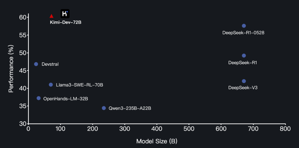 与此同时,月之暗面发布了强大的开源编程大模型 ——Kimi-Dev-72B。