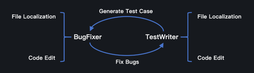 BugFixer 和 TestWriter 遵循着相似的流程:它们都需要先找到正确的待编辑文件,然后执行相应的代码更新 —— 无论是修正脆弱的代码实现(BugFixer 的任务),还是插入单元测试函数(TestWriter 的任务)。