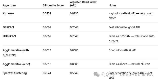 # ARI范围为-1到1(1表示完美匹配,0表示随机分配,-1表示完全相反)