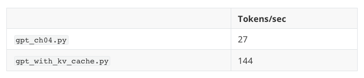 更重要的是,gpt_ch04.py 和 gpt_with_kv_cache.py 的实现产生了完全相同的文本。这说明 KV 缓存的实现是正确的 —— 要做到这一点并不容易,因为索引处理稍有差错,就会导致生成结果出现偏差。