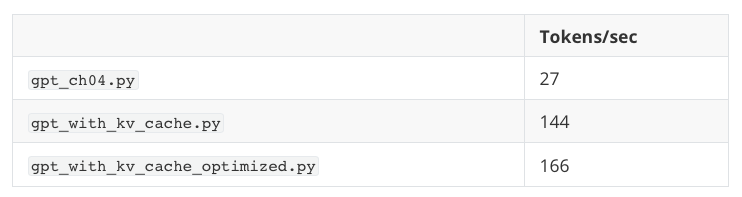 实际优化效果,可以在 GitHub 中 gpt_with_kv_cache_optimized.py 文件中看到。
