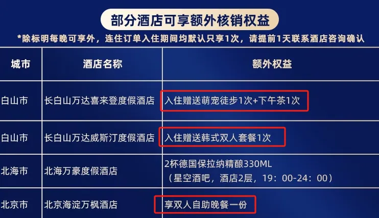 需要提醒的事,部分酒店还有额外核销权益,就是你预约这家酒店的时候,可以享以下部分权益: