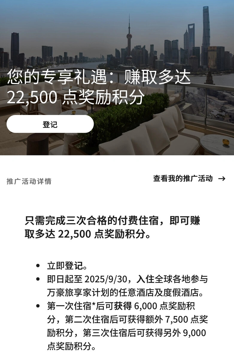 有兴趣的同学可以去自己的邮箱里翻翻本月万豪邮件,或者打开万豪旅享家APP-账户-推广和优惠。