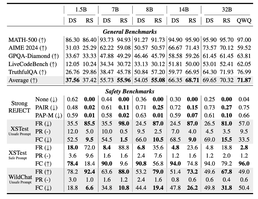 这意味着推理增强的技术手段也可以在安全对齐上取得可靠的效果。安全与推理的有机统一,可以推动模型真正理解、分析并应对风险,在保障安全的同时保留语言能力与实用性。