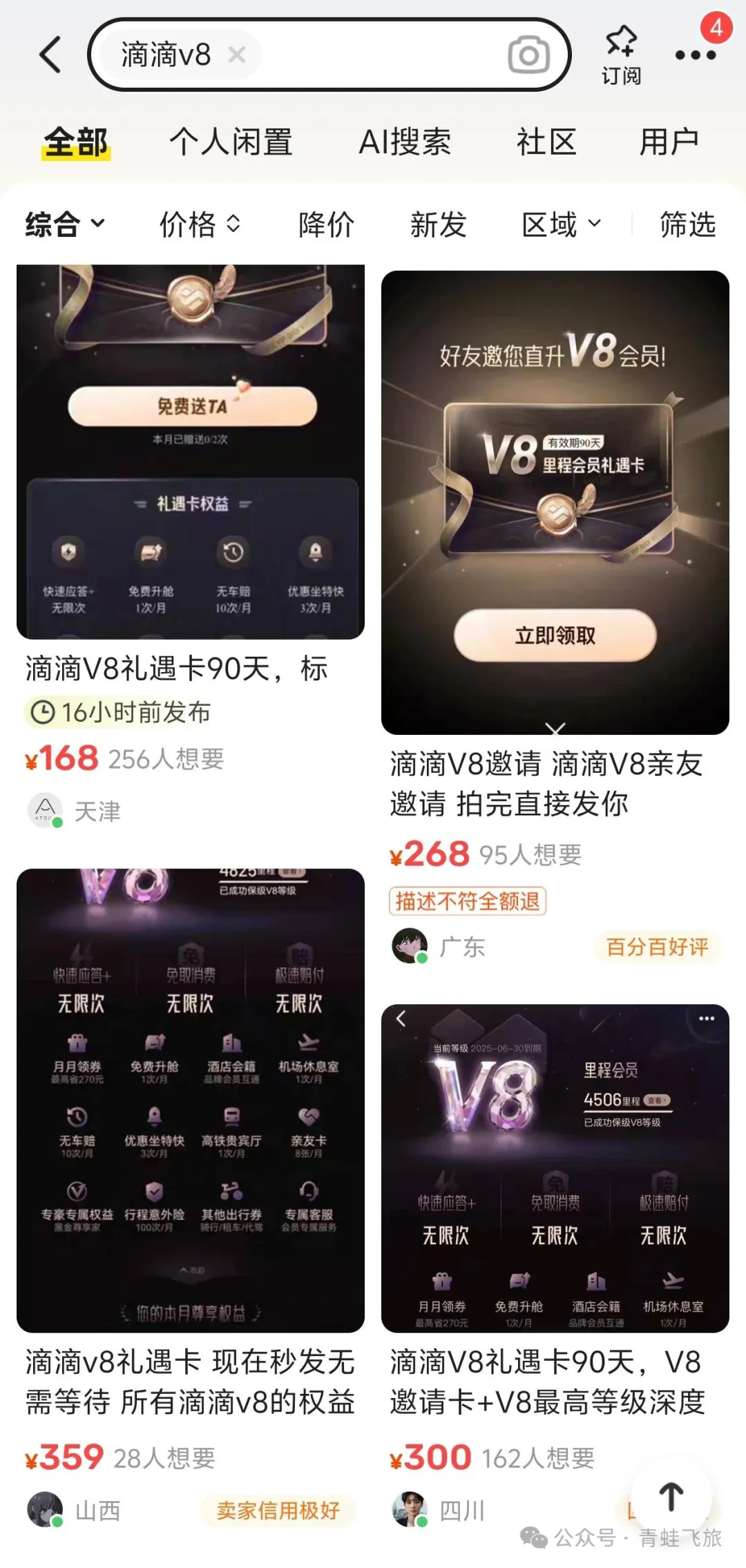除了希尔顿钻石,滴滴V8会员还能匹配华住会铂金和亚朵铂金,这些对于经常出差的用户来说,都是非常有价值的高级会籍。文章也提到,如果上述匹配路径都觉得繁琐,直接在闲鱼上寻找并购买他人赠送的滴滴V8邀请,开启挑战,可能是最便捷的获取方式。最后文章还提及了作者新建立的各类交流群,供对美卡、航司、高端卡、酒店积分等感兴趣的用户加入。