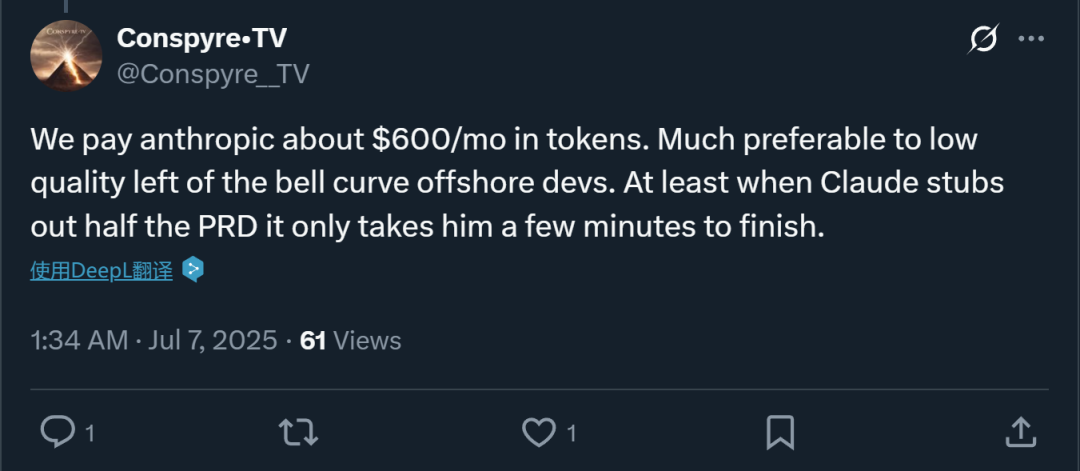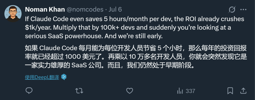 按照这个算法,每个开发者平均每年将向 Clade Code 贡献超过 1000 美元。这比很多个人订阅服务都高得多,意味着用户群体中存在大量高价值、高粘性的付费用户。