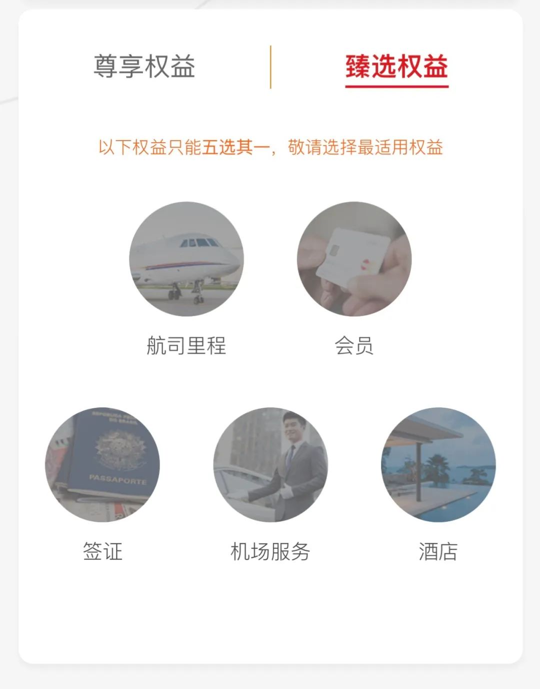 和同样 5 个但是只能选 1 个的「臻选权益」: