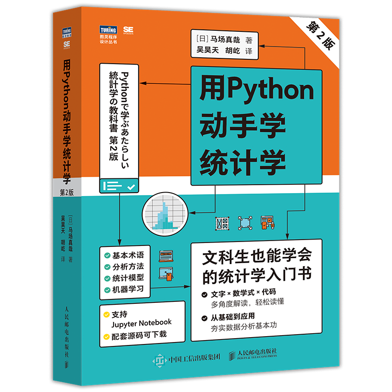 11. 《用Python动手学统计学(第2版)》则通过文字、数学式和Python代码多维度讲解统计学知识,适用于统计学和Python初学者。