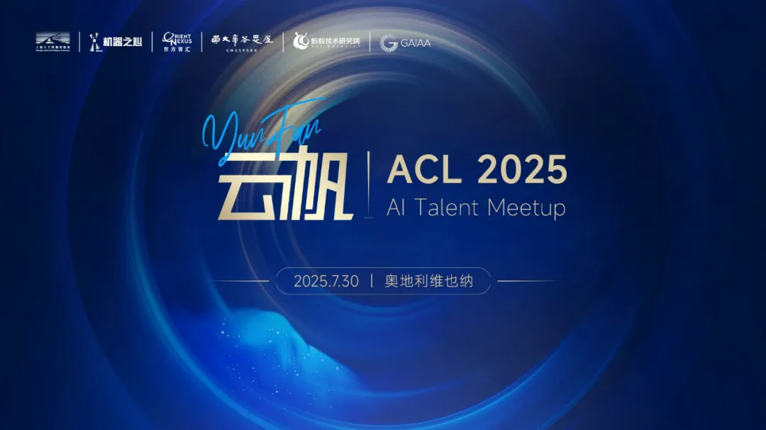 这是一次聚焦前沿技术与人才对话的特别聚会,由机器之心与上海人工智能实验室、东方菁汇、 黄大年茶思屋科技网站、蚂蚁技术研究院、全球高校人工智能学术联盟共同发起,诚邀大家参加「云帆・ACL 2025 AI Talent Meetup」,一起来见见老朋友,结识新朋友,聊聊最近的热点话题 & 研究方向。