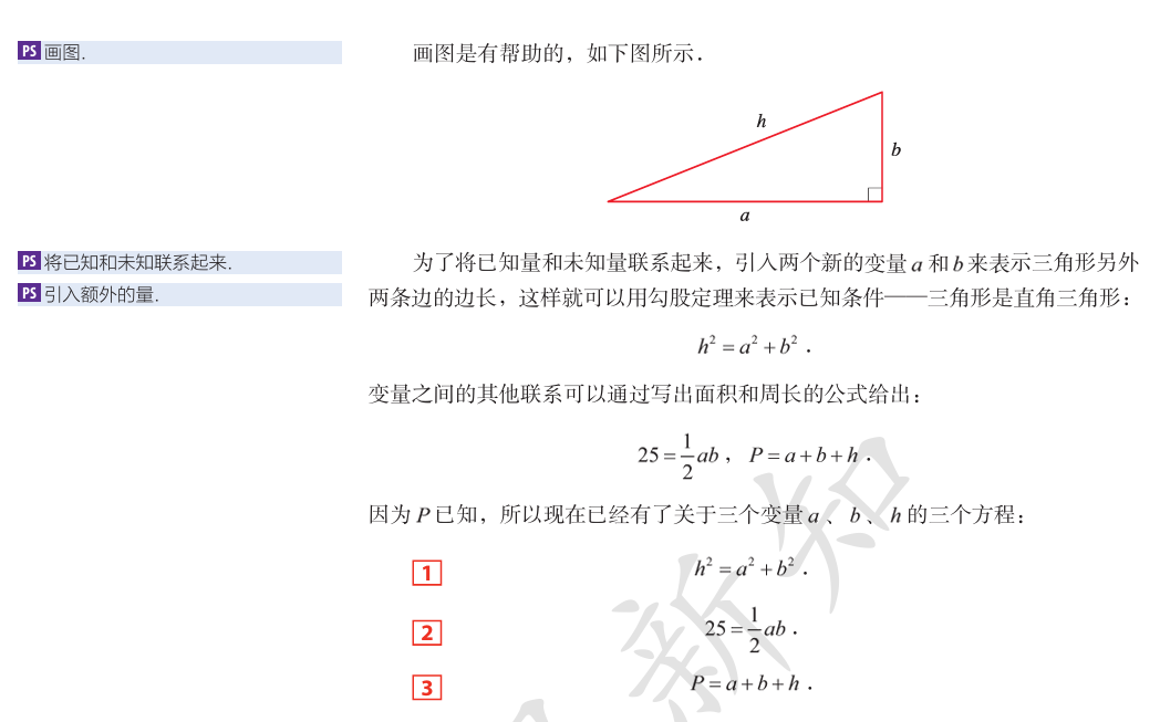 不过,我们可以概括解题过程的一般步骤,并给出对于某些题目可能有用的解题原则.这些步骤和原则只是对常识做了明确的总结,改编自乔治·波利亚的书《怎样解题》( How to Solve it).