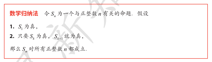 这个方法之所以合理,是因为既然 S1 为真,那么由条件2(令K=1 )可知必为真,然后继续利用条件 S2(令K=2 )得到 S3 为真,再利用条件2(令K=3 )得到 S4为真……这个过程可以无限延续下去.