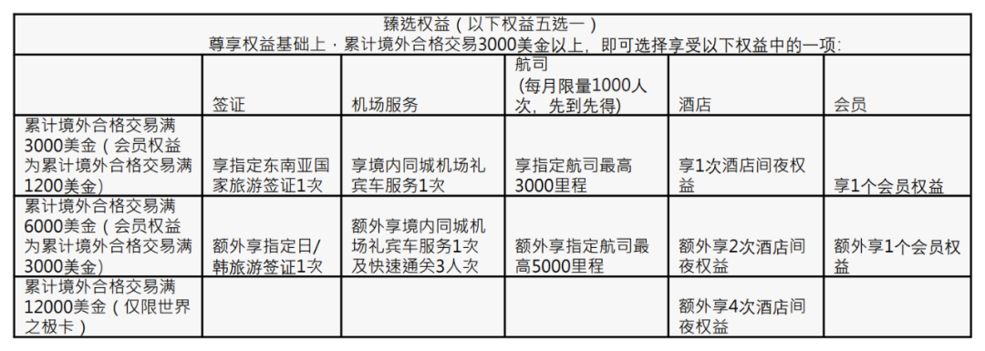 狗熊自己最喜欢的是消费大挑战,从最简单的任意消费 1 or 5 笔,到最高门槛的境外消费 1.2w 美金,都能拿到各种档次的非常实用的礼品、权益。可以看到,日常境外消费,获得尊享权益,而最后的消费满额,额外获得臻享权益。