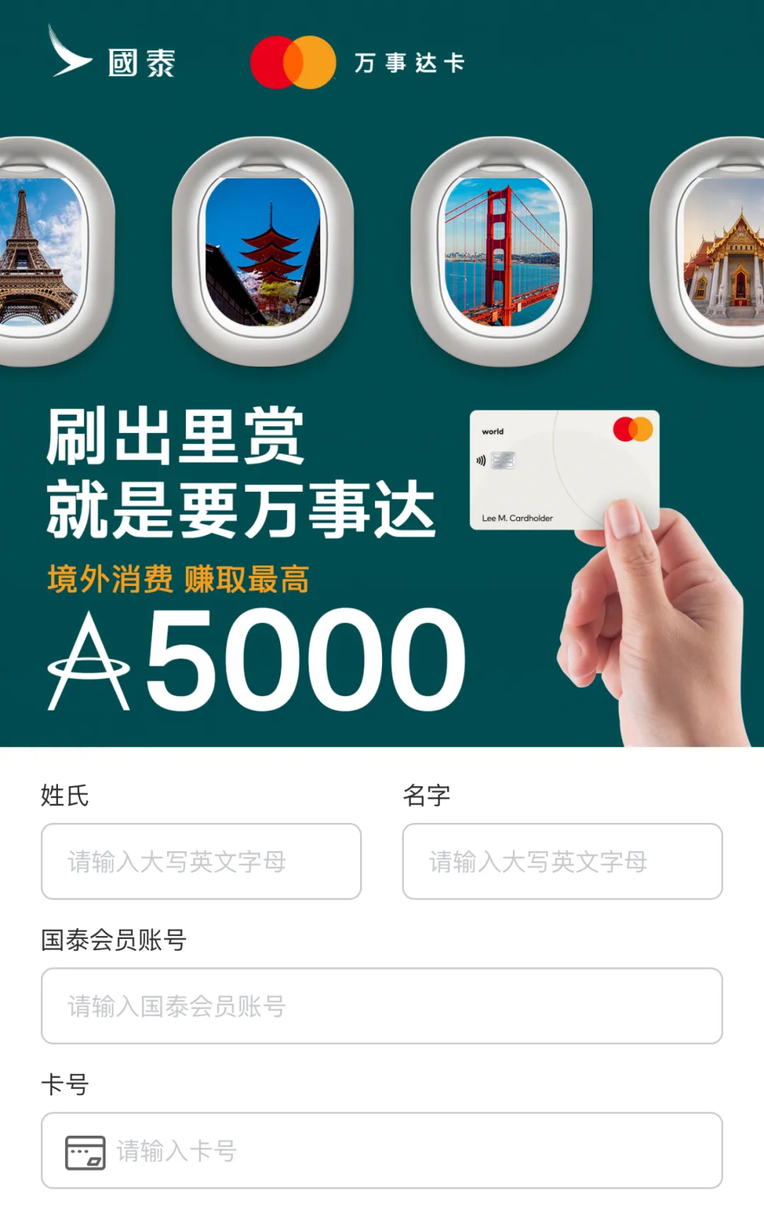 原文标题:万事达卡+国泰联手撒里数,最高省出一张机票!