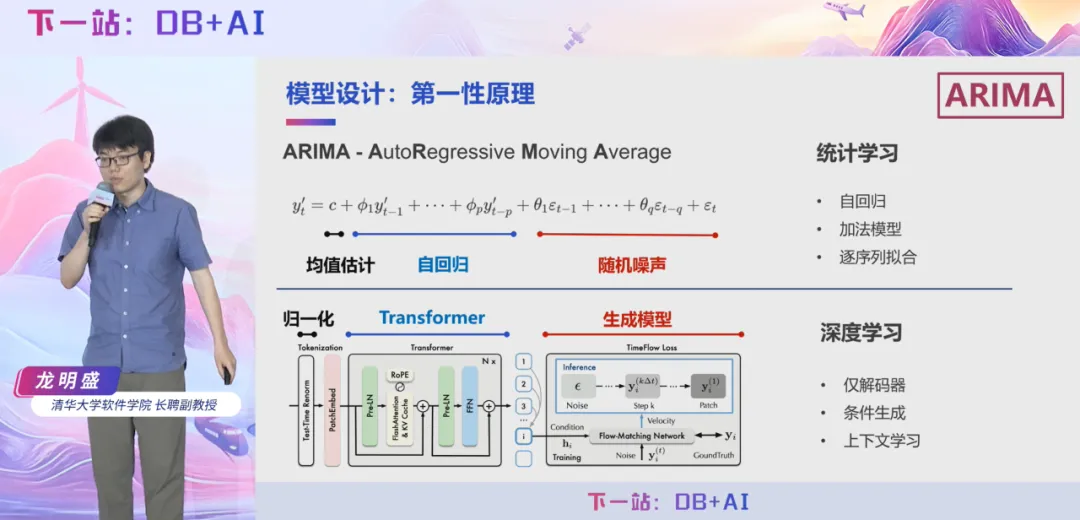 同时,龙明盛教授深入剖析了时序大模型领域的技术发展现状。作为国际上最早开展时序大模型研究的团队之一,龙明盛教授指出,行业初期普遍存在简单移植语言模型架构的现象,而这种做法其实无法解决时序数据分析复杂性所带来的一系列根本问题。