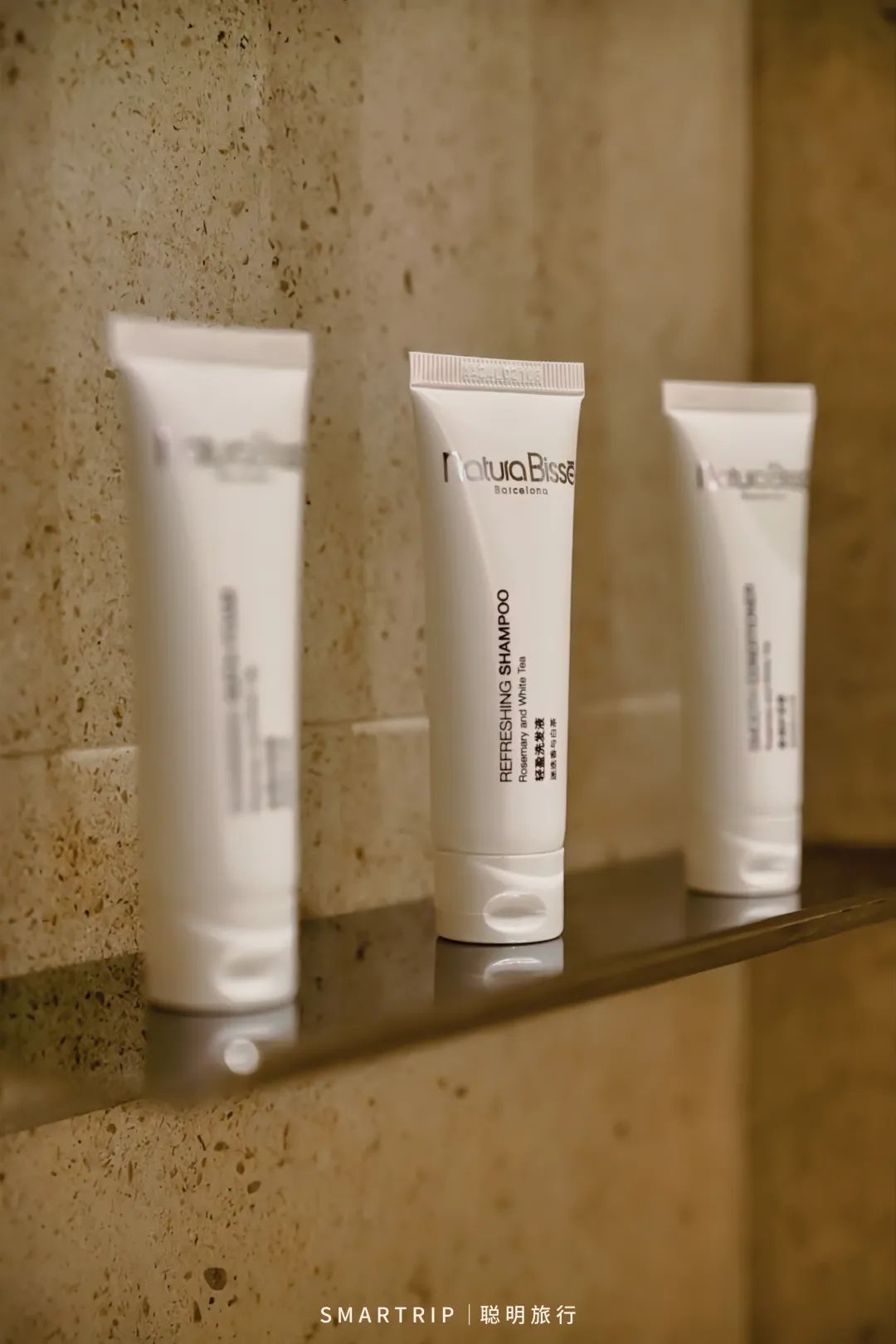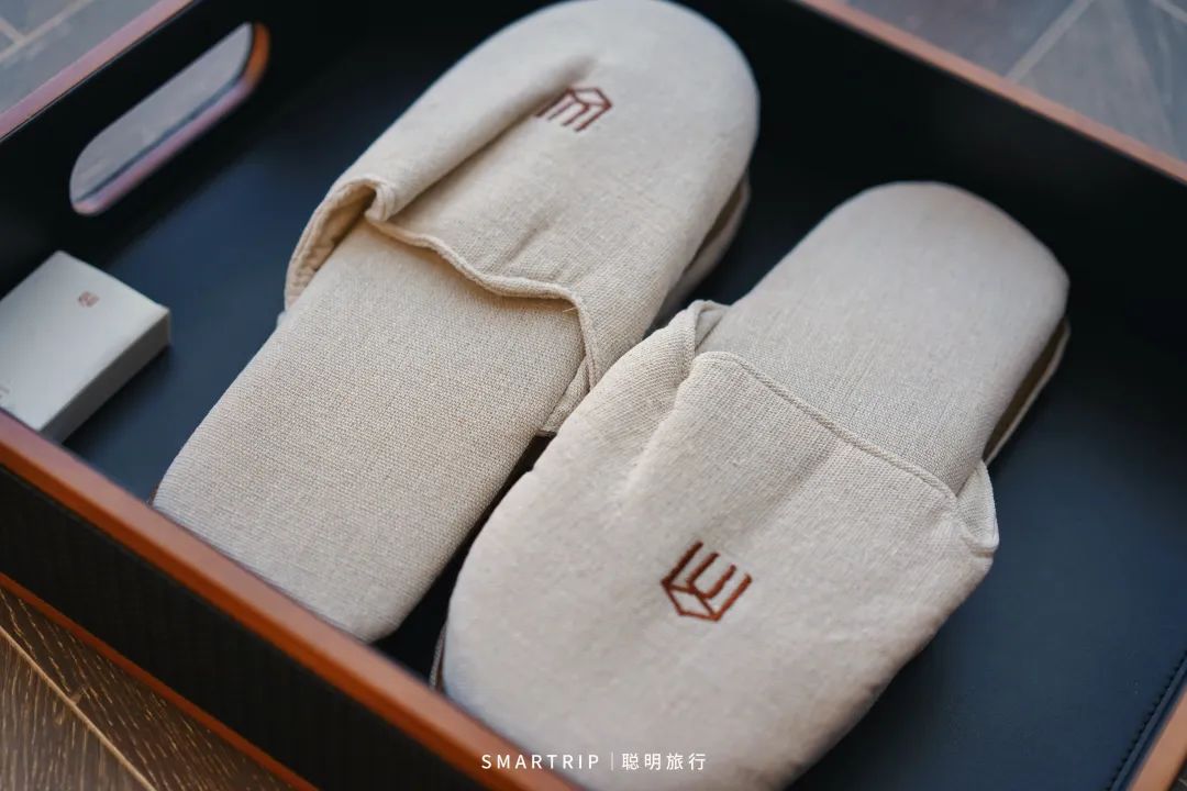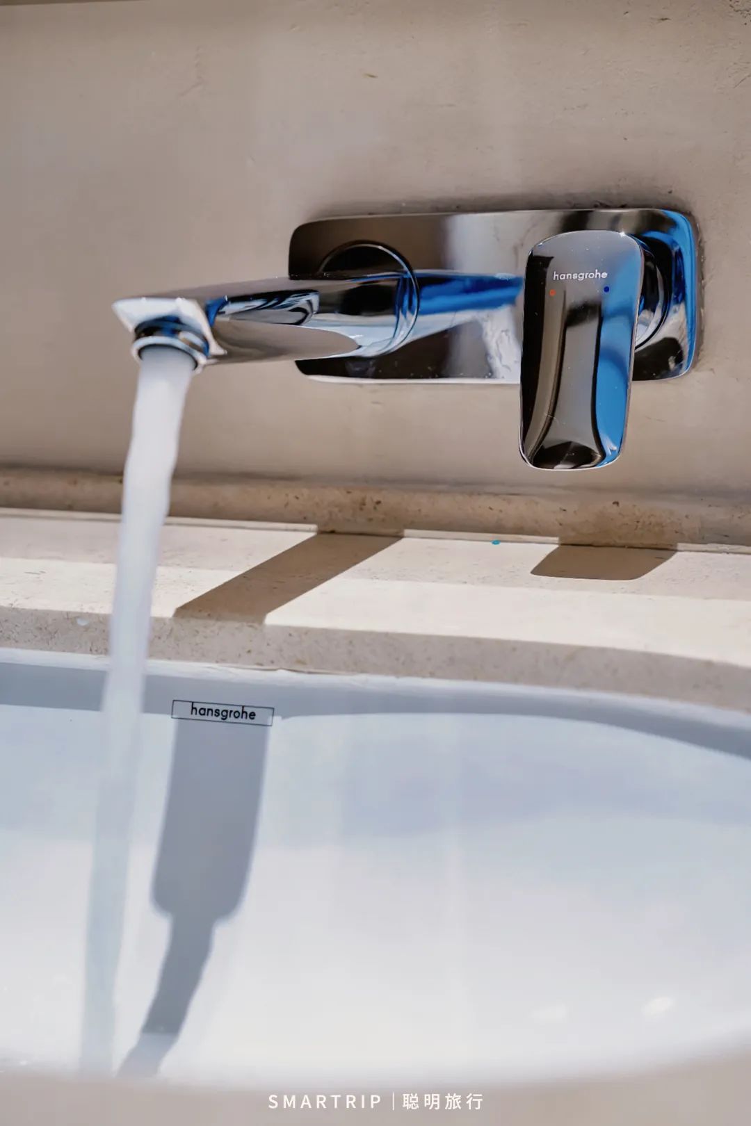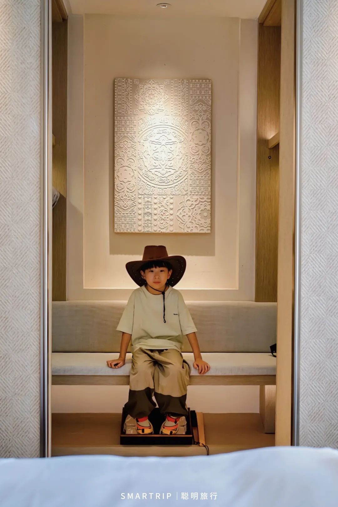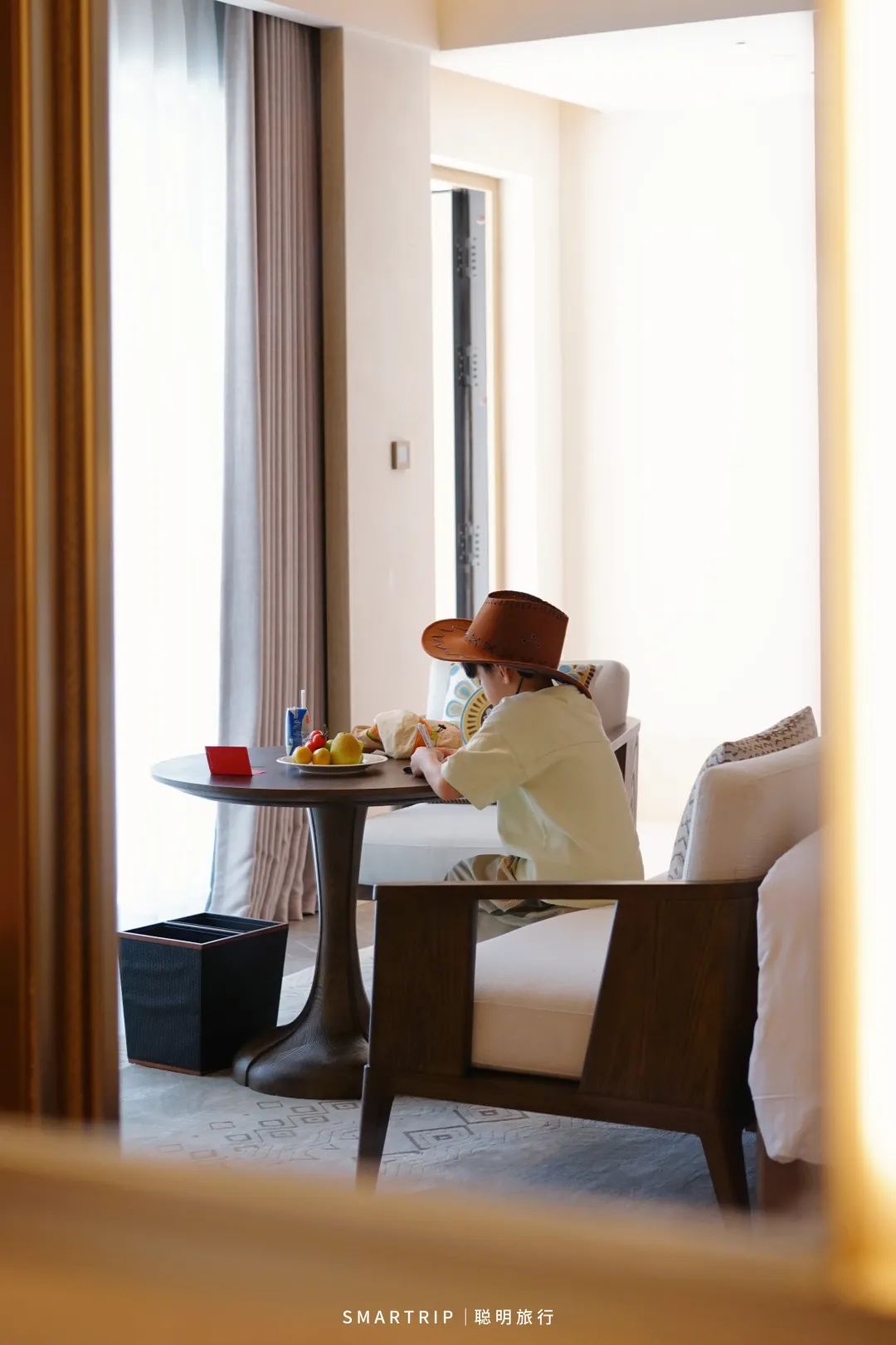 酒店共有69间客房,分布在5个两层院落中,每间客房面积45平方米起,装饰融入“驼铃”、“飞天”等丝路符号,并配备高品质卫浴设施,如汉斯格雅、TOTO卫洗丽和戴森吹风机。值得一提的是,酒店的欢迎礼和迷你吧也体现了细致入微的服务。此外,每个院落都设有水景,包括戏水池和泳池,在沙漠中营造出绿洲般的度假体验。