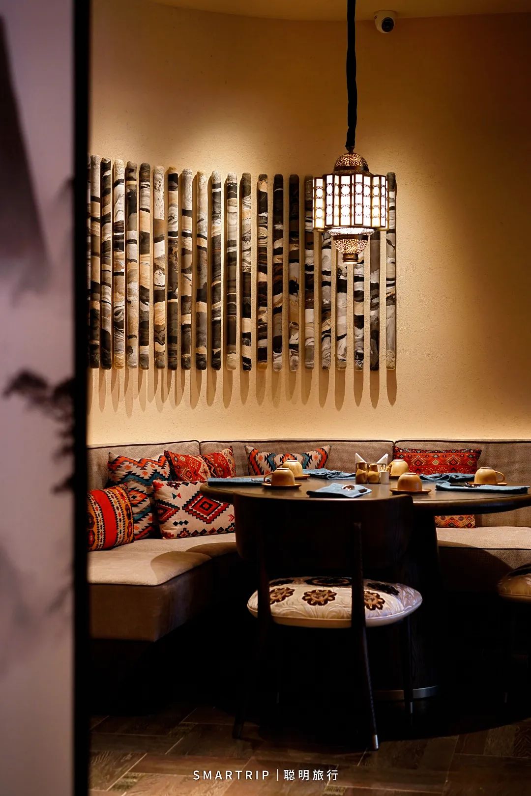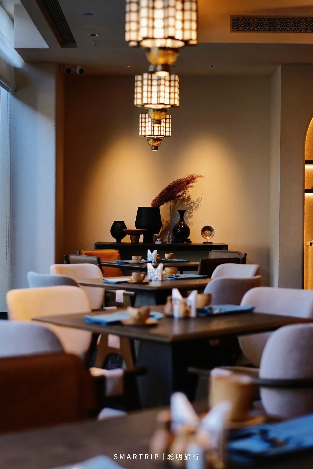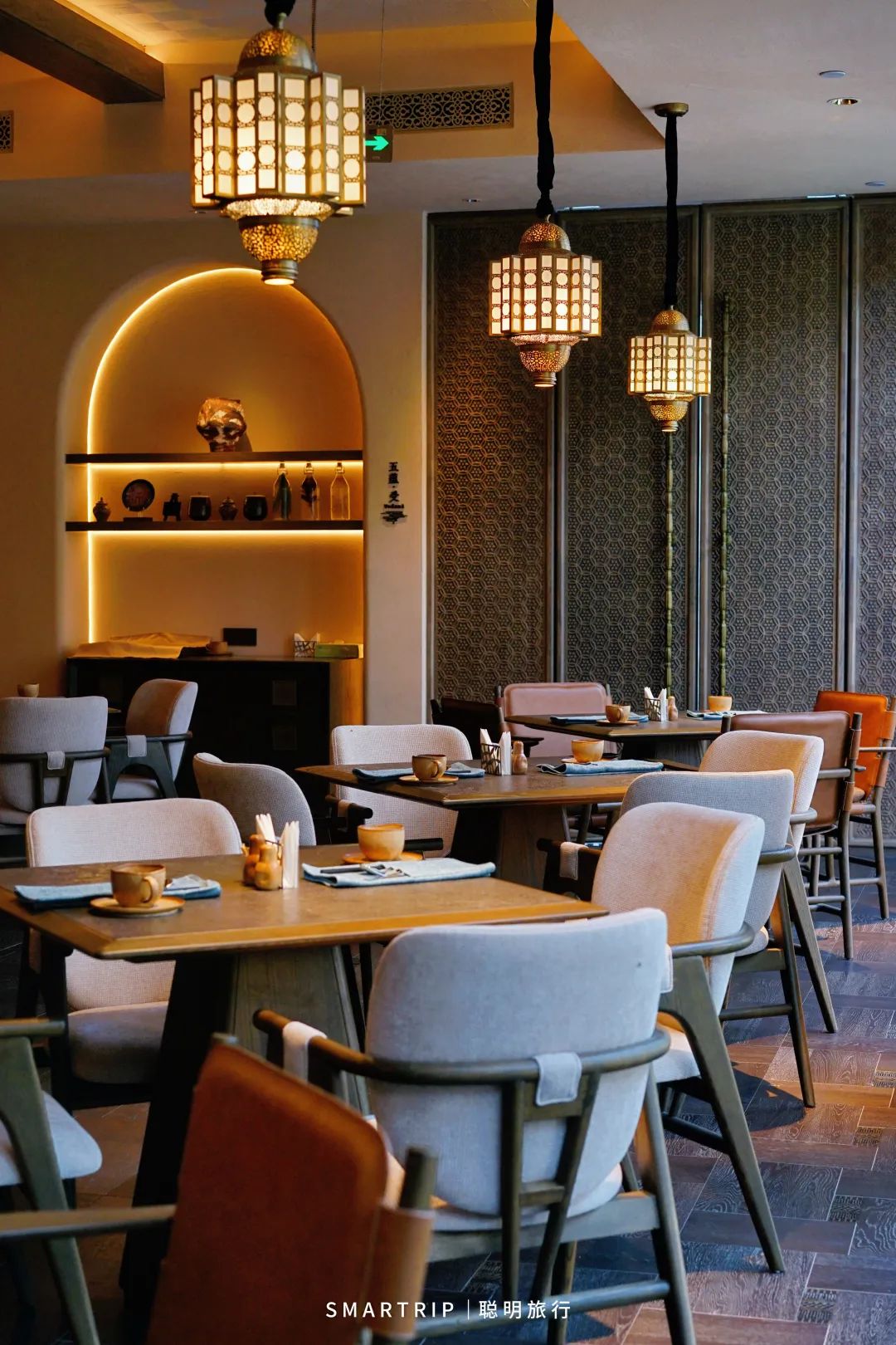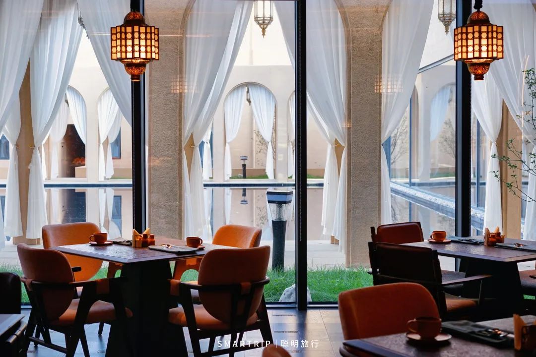 餐厅面向中庭水景,清晨的人间烟火和丝路风情同时拿捏。