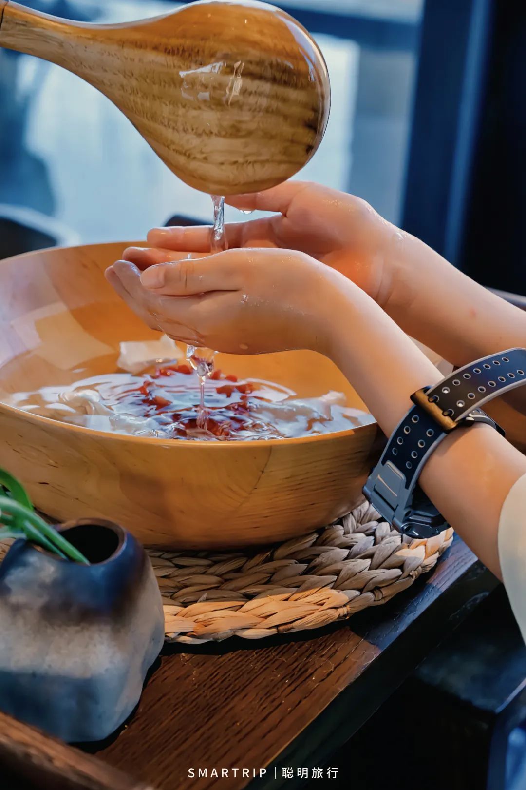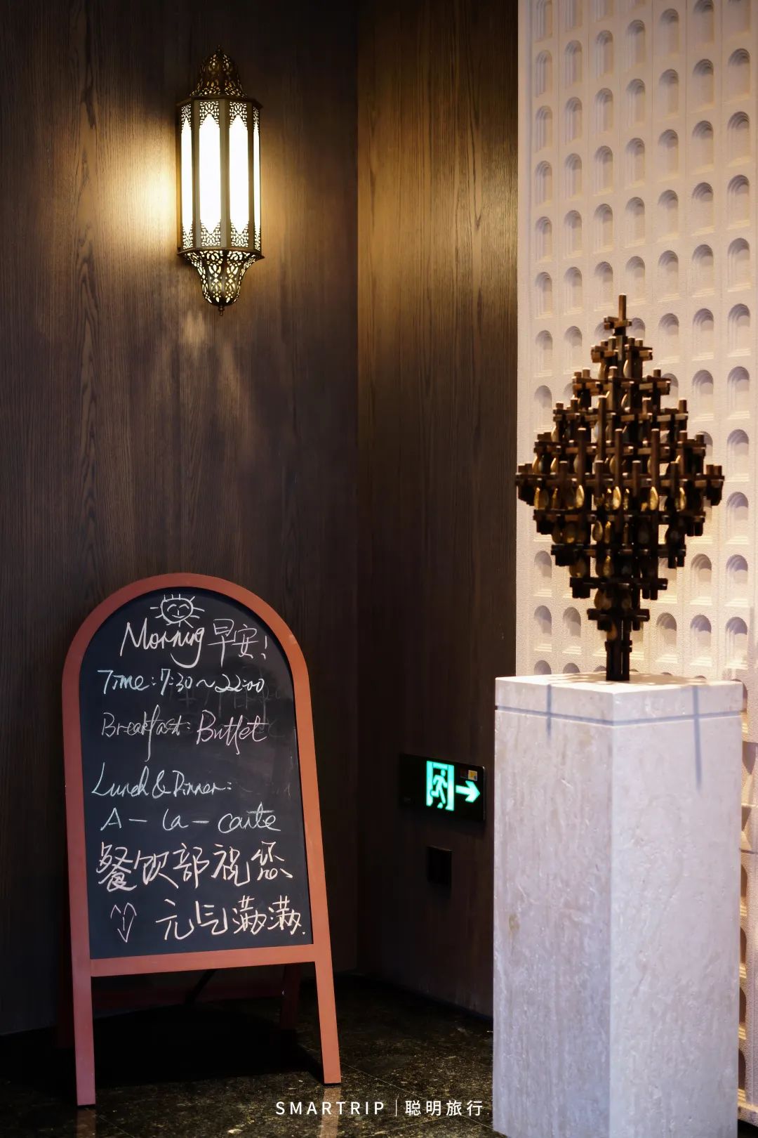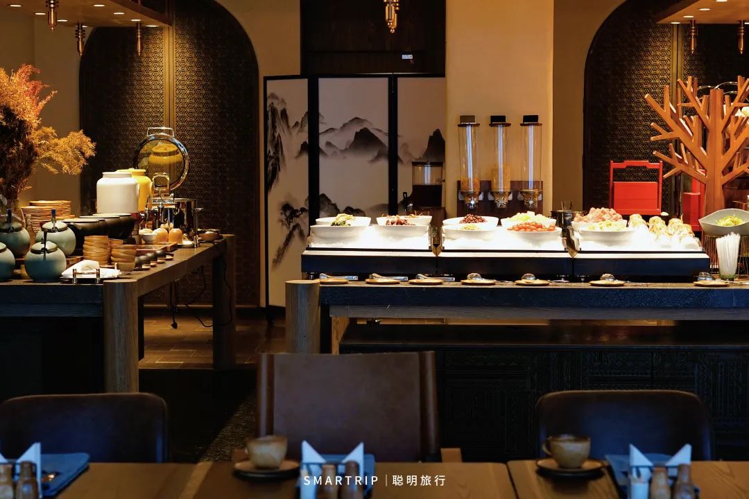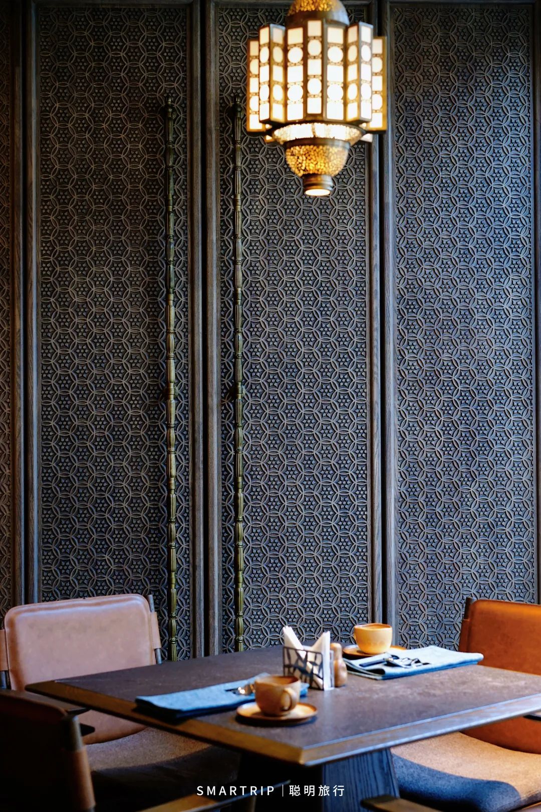 餐厅面向中庭水景,清晨的人间烟火和丝路风情同时拿捏。