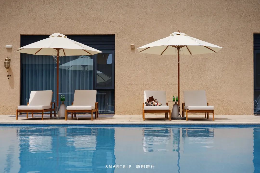 每个院落都有水景是酒店很特别的设计,3个戏水池和一个泳池,每个人都能找到沙漠绿洲。