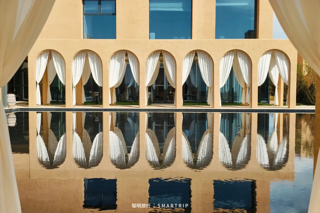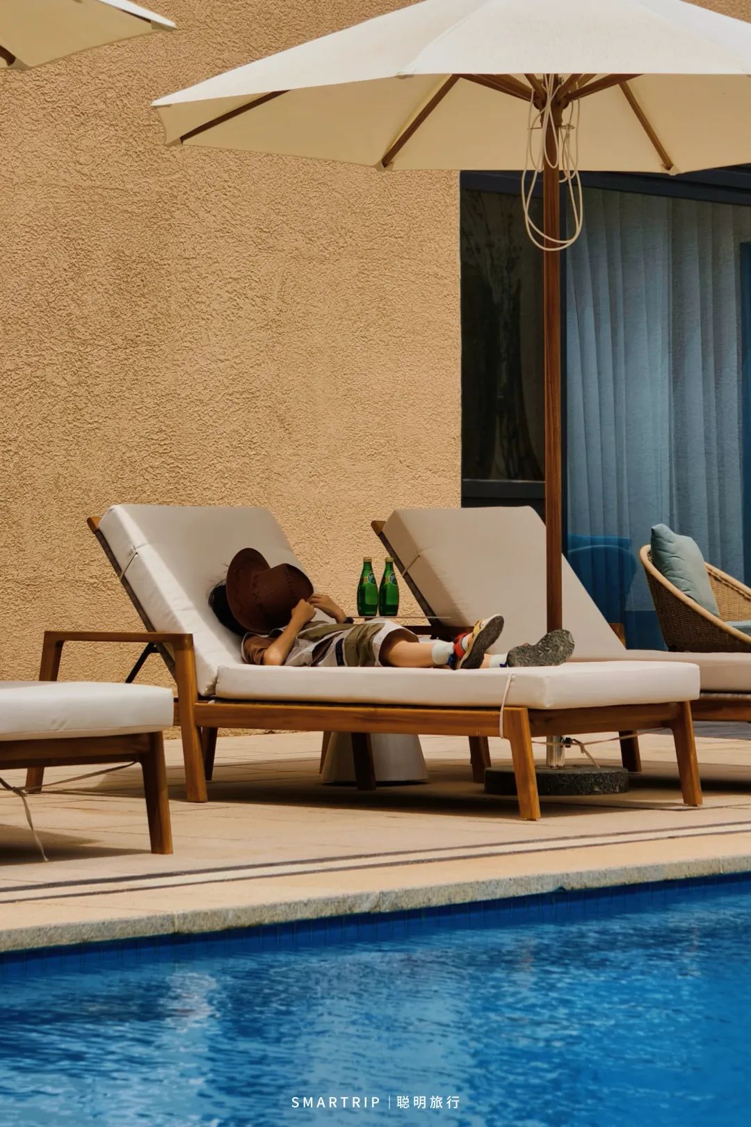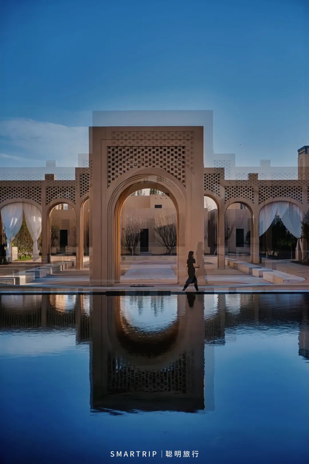沙漠里的度假感一定是泳池给的,在敦煌每晚都有星星坠入“月牙泉”。