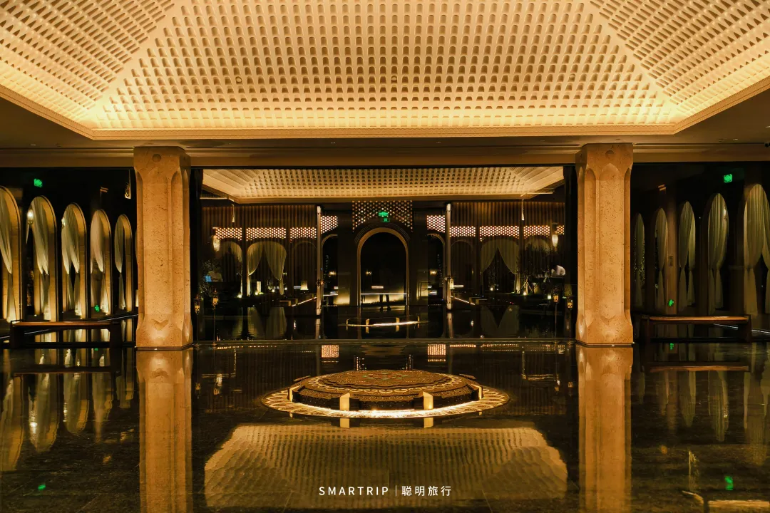 大堂的设计灵感源自莫高窟,没有张扬的金碧辉煌,而是充满敦煌元素的现代演绎。