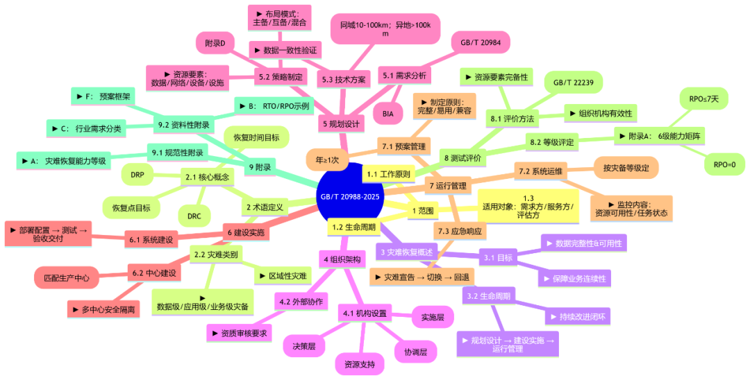 GB/T 20988-2025《网络安全技术 信息系统灾难恢复规范》定义了灾难恢复的生命周期管理,包括规划设计、建设实施和运行管理。
