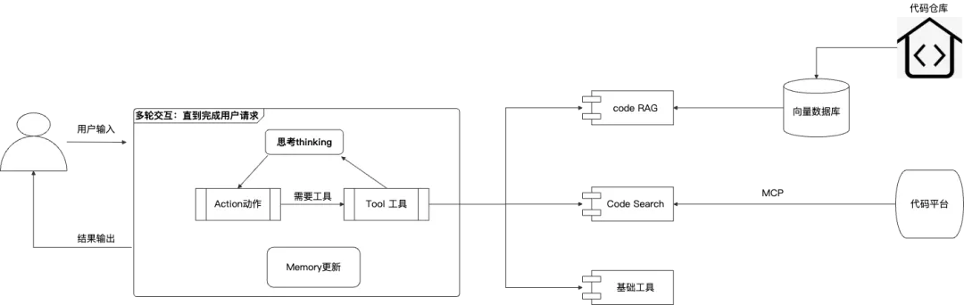 通过AI Agent利用代码查询工具,加上Agent的思考过程,会使查询结果进一步准确,但是,一旦一次查询的结果不够更好,基于这次查询结果的下一次迭代思考,会造成结果的不确定性,而且,也取决于代码查询工具的准确性,以致于不能够稳定输出正确的推理结果。