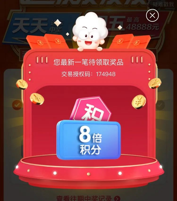 奖品有:2,000 / 5,000 / 10,000 积分、8 积分星巴克、3 / 888 消费金、888 元刷卡金。