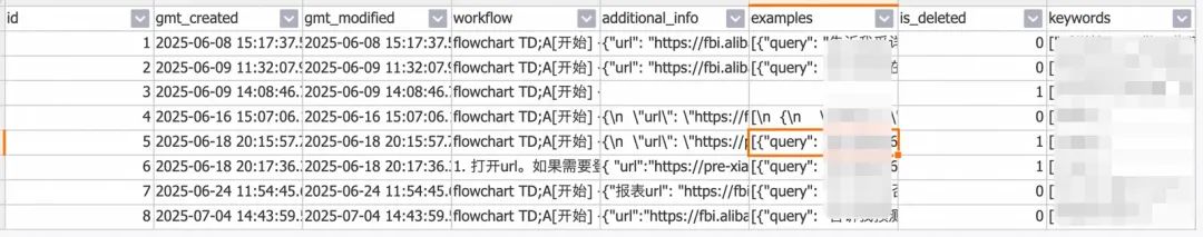 定义表结构如下,通过Postgres MCP,让agent在执行任务前,把用户的提问与表中的keywords进行匹配,找到符合场景的详细信息,就可以实现精准的“RAG”。(若使用ideaLab,可以在项目中提供查表接口,在ideaLab中封装成工具)