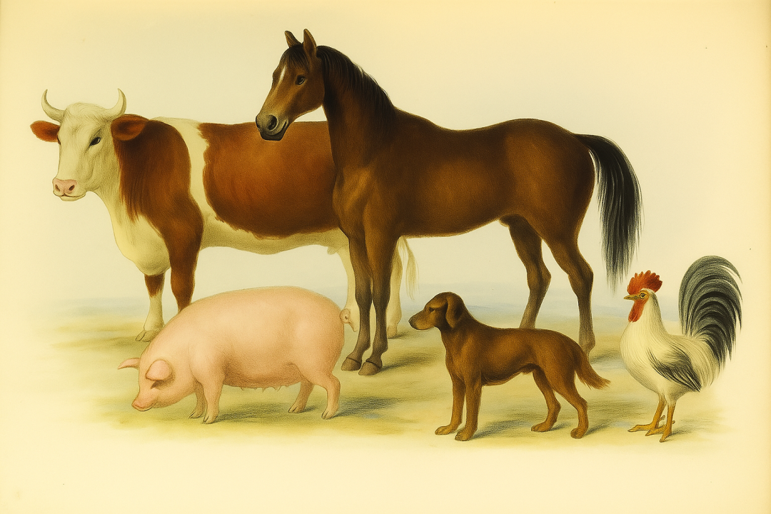 总而言之,对野生动物的观察已经表明物种存在一定限度内的变异性;而对野生动物驯化以及家养动物重新野化的实验则更清楚地证明了这一点。此外,这些实验还表明,这种变化甚至可以达到属的差异程度。”他在 1859 年出版的《普通自然史》(第二卷,第 430页)中进一步详细阐述了类似的观点。