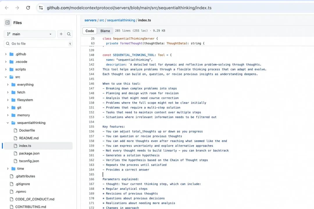 这个工具通过一个形式化的工具定义来实现,包含名称、描述和输入模式(input schema),比如mcp协议中标准的的think-tool定义: