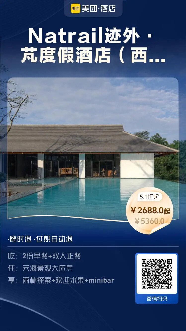想体验热带雨林野奢的一面,就去住迹外。扫下面二维码领取200券,套餐券后2488/晚。