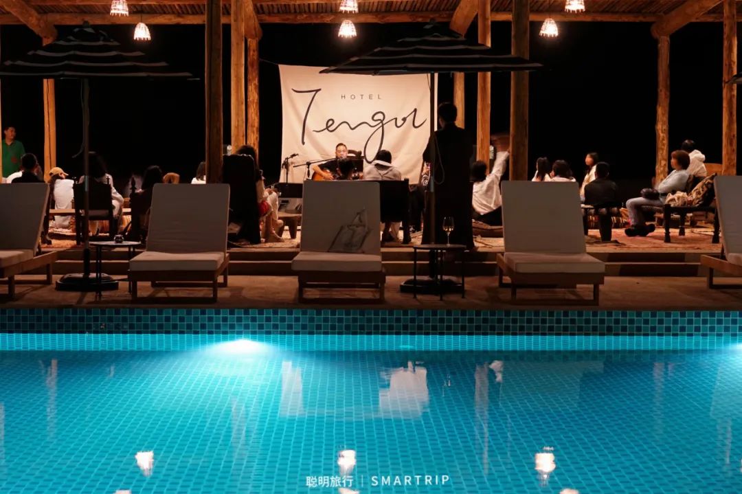 除了景观、硬件和细节,4:1的管家群、恒温泳池、专业观星课程、酒店专属沙漠玩乐项目、健身房全套的WaterRower、歌手驻唱,Tengol做奢华酒店,在体验和服务上也是下了功夫的。