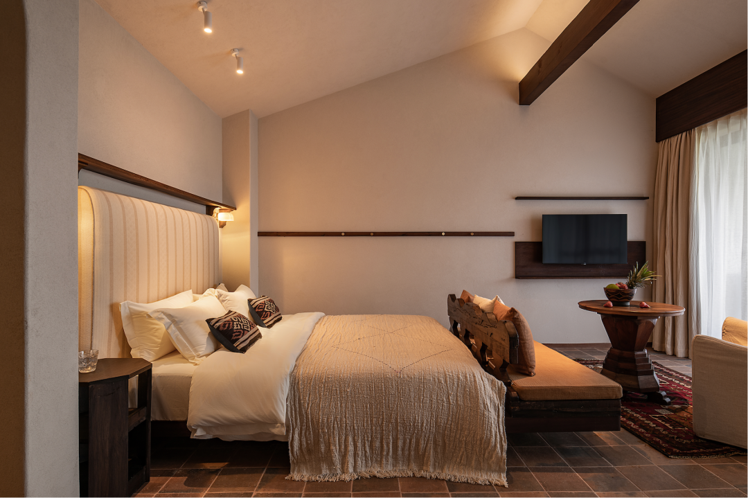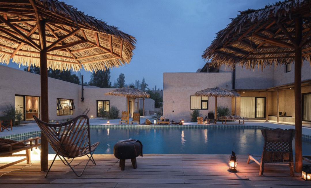 从建筑到室内设计,从材质到陈列,Tengol的20栋建筑、105间客房,沙漠元素无处不在。除了在地原料和手工艺物产的运用以外,还有来自世界各地的中古家具、手工羊毛地毯和岩画装饰。