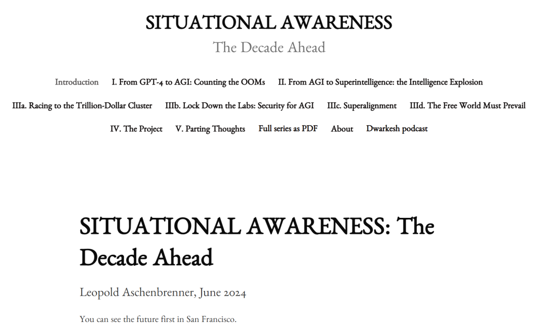 文章链接:https://situational-awareness.ai/