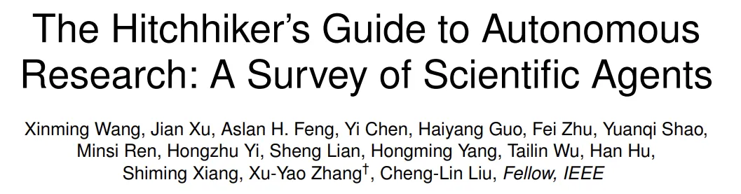 欢迎关注中国科学院自动化研究所 & 北京中关村学院 & 芝加哥大学 & 西湖大学 & 腾讯带来的科研智能体方面的最新综述调研。