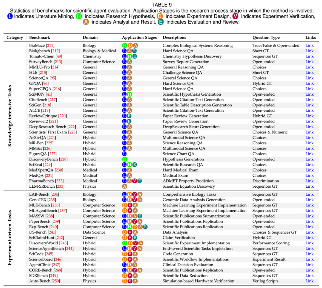 根据现有基准的侧重不同,基准主要分为知识密集型任务以及实验驱动型任务,两者对于整体科学研究过程中各有侧重。