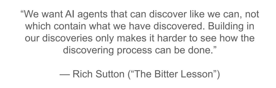 再次引用 Rich Sutton 在《苦涩的教训》中的话:Scaling 的发现只会让我们更难看清发现过程是如何完成的。