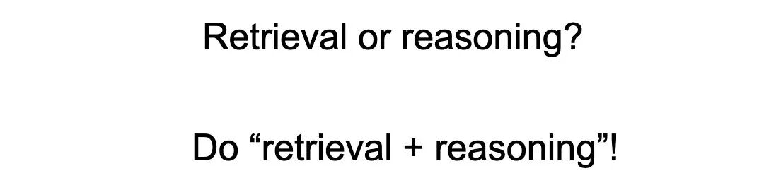 另一种方法是检索。我知道关于检索推理有很多辩论,很多人说语言模型可能只是做检索而不是推理,对我来说,实际上总是很难区分检索和推理。