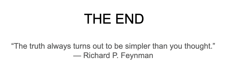 Denny Zhou 引用了 Richard Feynman 的名言:「真理总是比你想象的更简单。」他强调,这句话对于机器学习研究尤其适用。很多学术论文过于复杂,但实际上,我们的研究可以保持简洁明了。