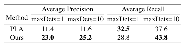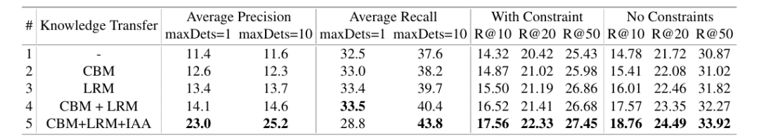 表 1:与基线模型在 Action Genome [3] 数据集上目标检测性能对比实验结果
