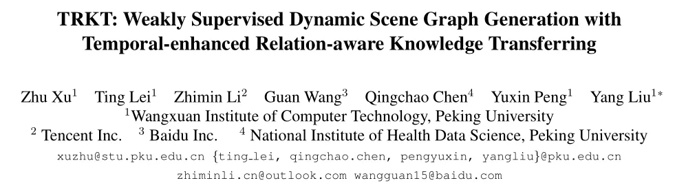 论文标题:TRKT: Weakly Supervised Dynamic Scene Graph Generation with Temporal-enhanced Relation-aware Knowledge Transferring