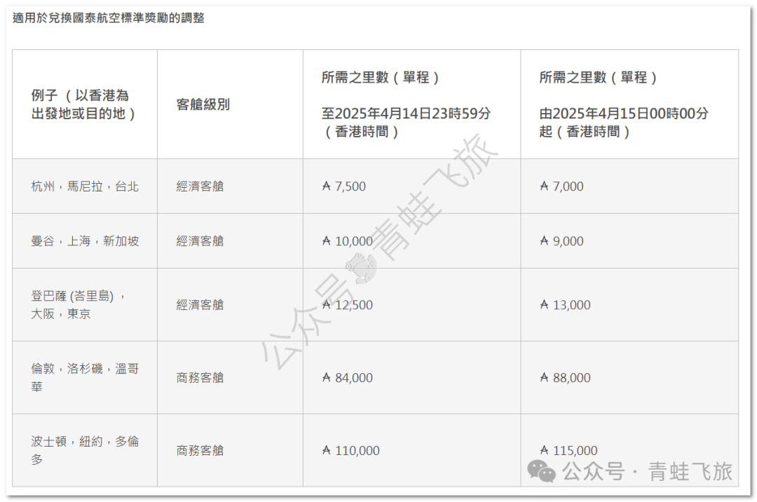国泰发布公告,25.4.15起里程票兑换标准小幅调整,短途要求的里程下降,长途要求的里程增加,不过均是小幅,整体可接受。