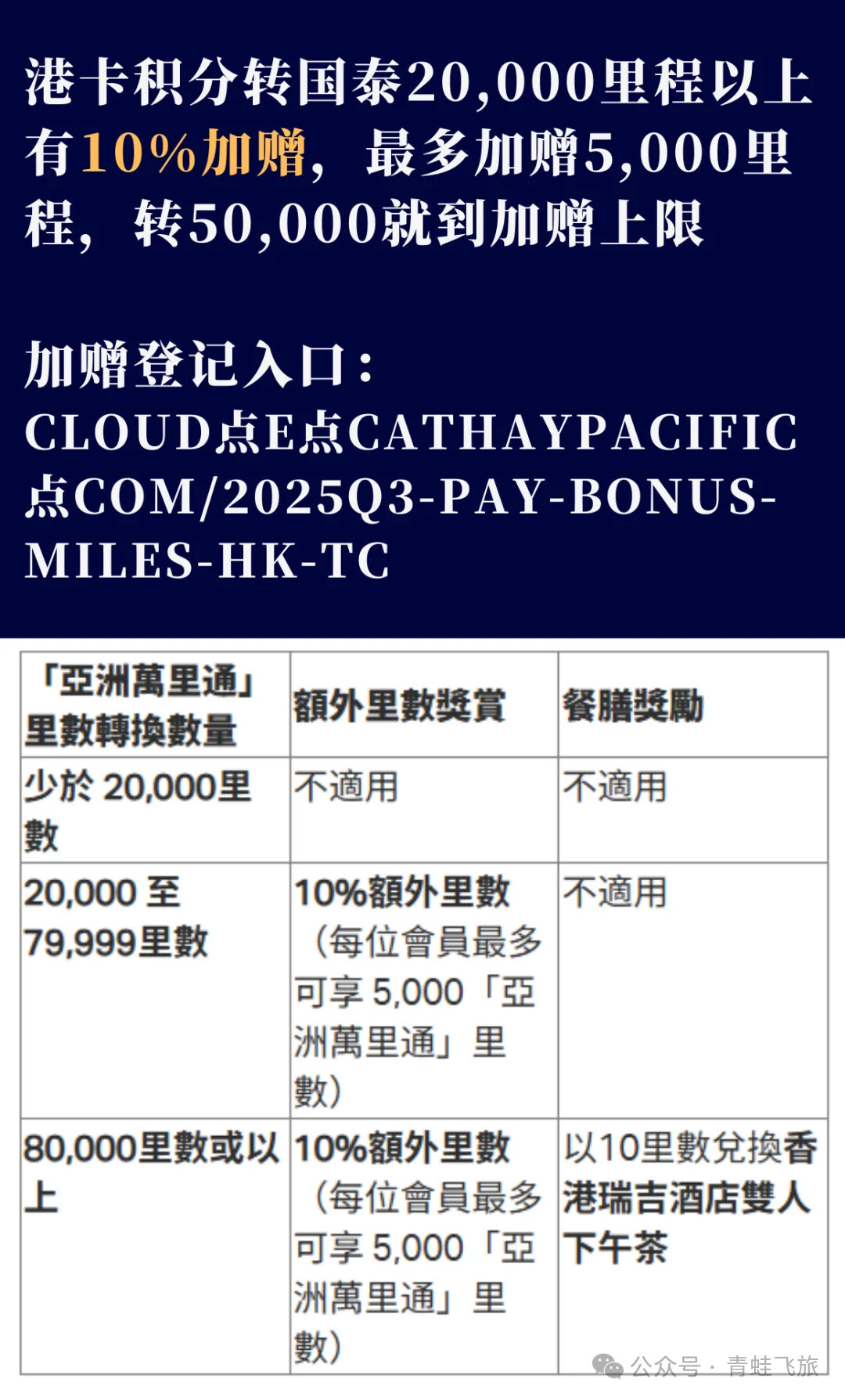 需要港卡转分过去加赠10%,比如只有pulse卡的用户用RC转到国泰。报名链接为:https://cloud.e.cathaypacific.com/2025Q3-PAY-BONUS-MILES-HK-TC