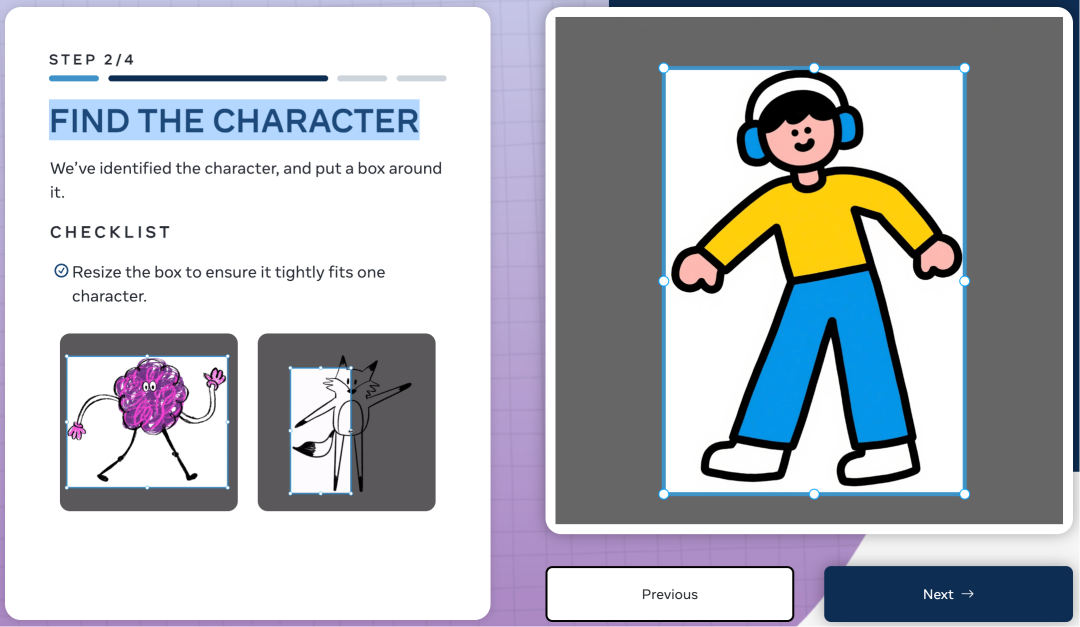 AI 会自动识别角色,并用方框将其围起来,调整方框的大小以确保它紧贴角色。