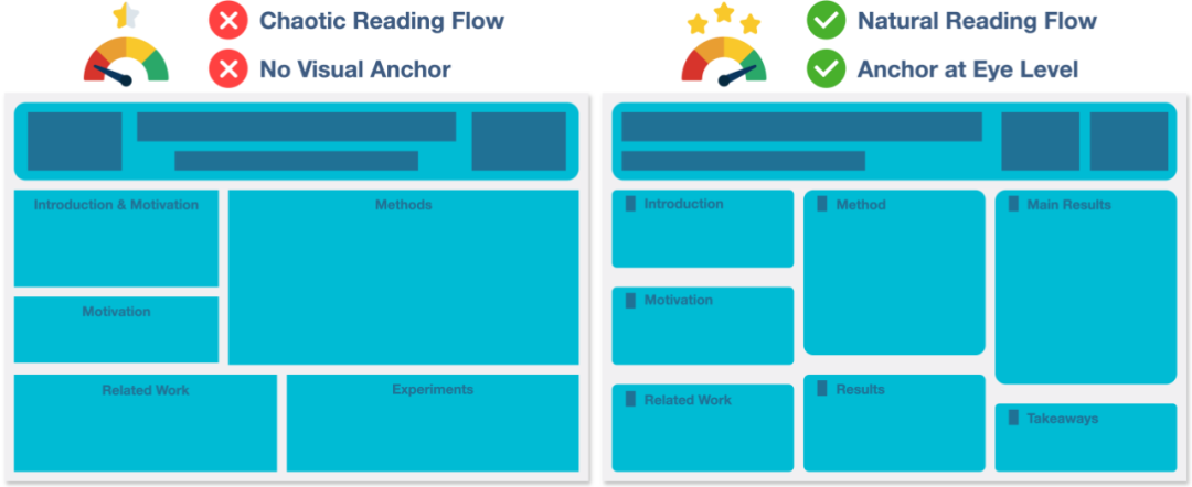 叙事结构(Narrative):一张好的海报必须逻辑清晰。PosterGen 采用科学写作中经典的「And, But, Therefore」(ABT)叙事结构。它首先建立研究背景(And),接着点明问题与挑战(But),最后呈现解决方案与成果(Therefore),以此构建出一条引人入胜的逻辑线索,引导观众快速理解研究核心。