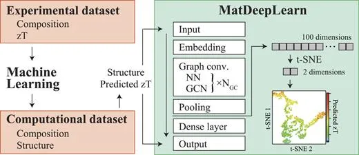 该研究聚焦于包含六个选定元素(Sb、Te、Sn、Se、Bi、S)的材料的电热性能,通过机器学习模型对实验数据中的 zT 值进行训练,展示了预测能力。