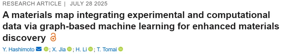 此次研究以「A materials map integrating experimental and computational data via graph-based machine learning for enhanced materials discovery」为题,发布在《APL Machine Learning》。