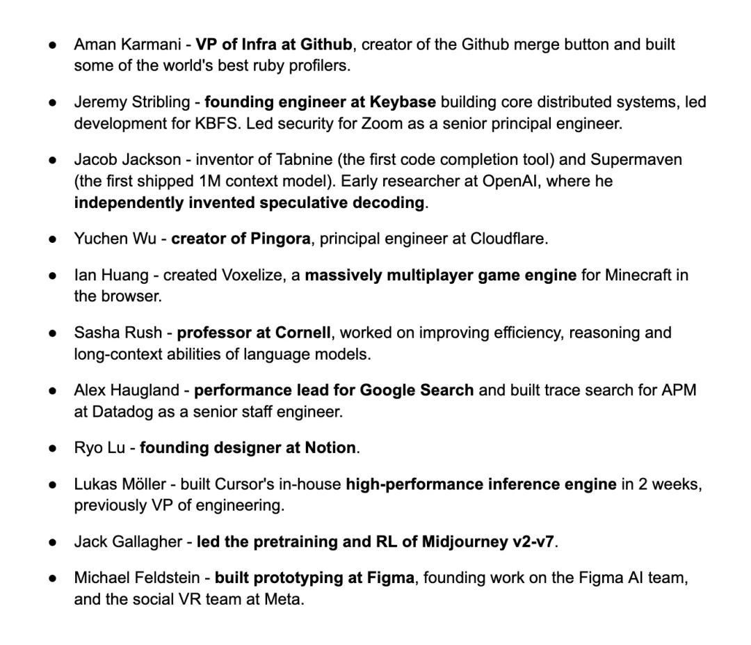 Cursor 早期团队的部分成员